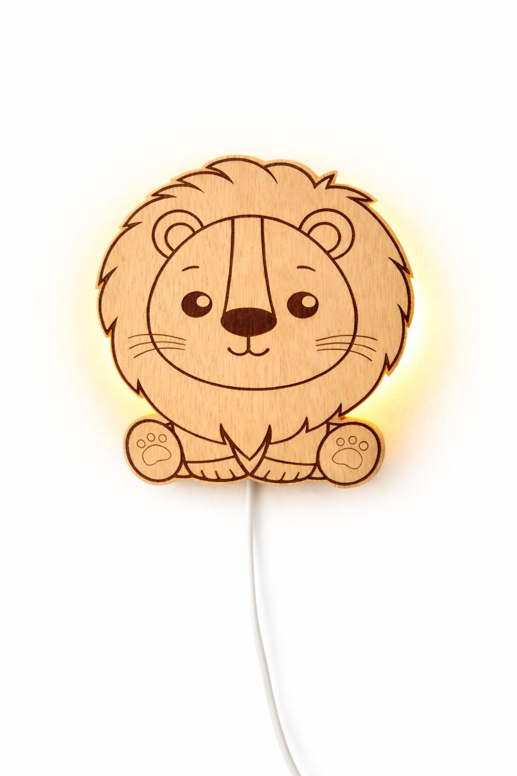 Deze houten kinder wandlamp leeuw is perfect voor de kinderkamer en zorgt voor een warme, sfeervolle verlichting.