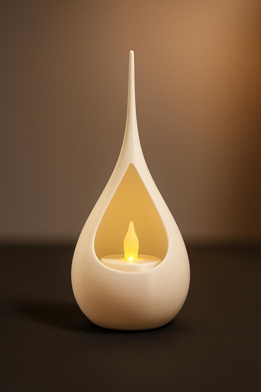 Breng warmte en elegantie in je interieur met de Luma Duo – een set van twee 3D-geprinte LED waxinelichthouders in prachtige druppelvorm.