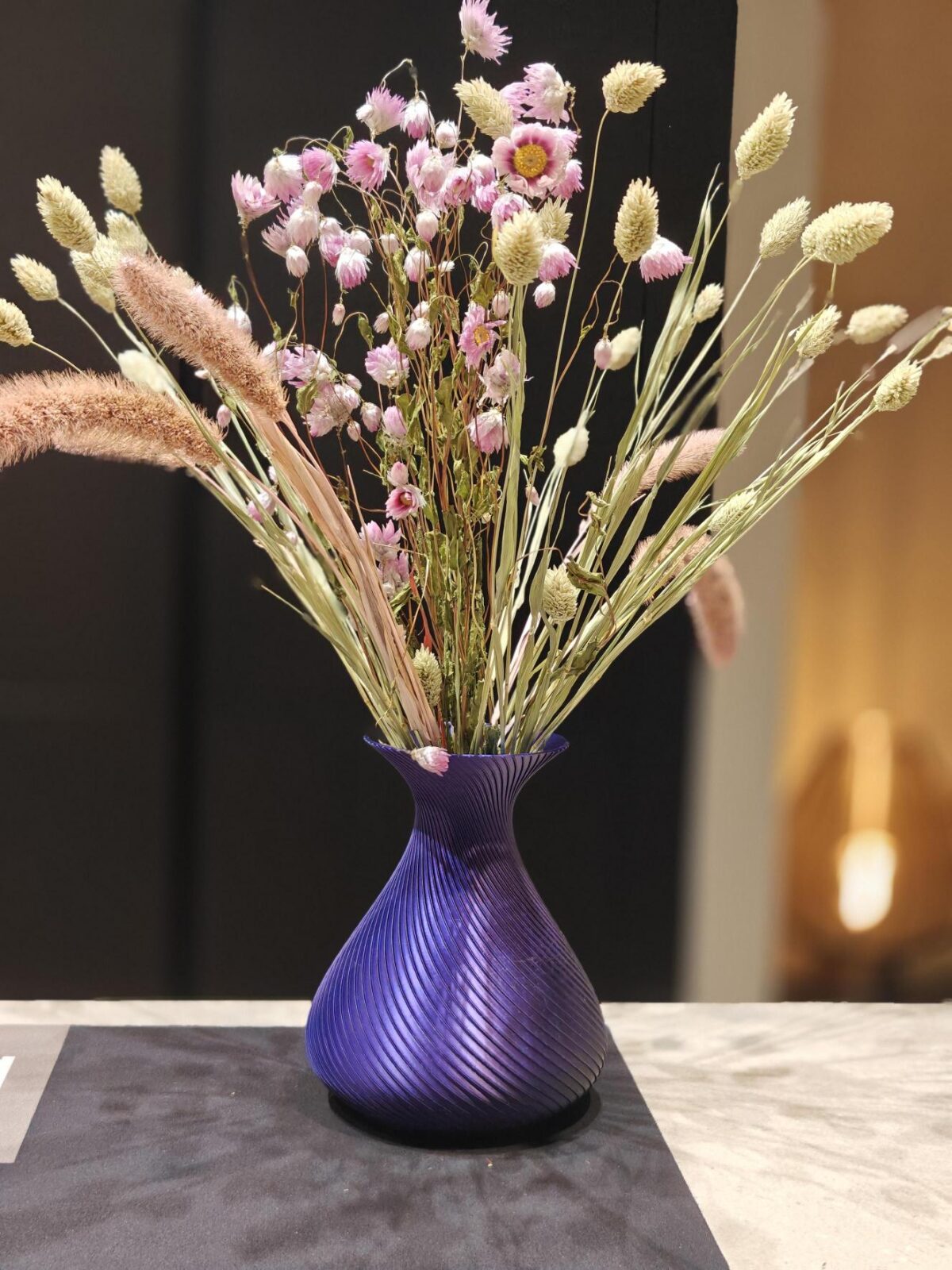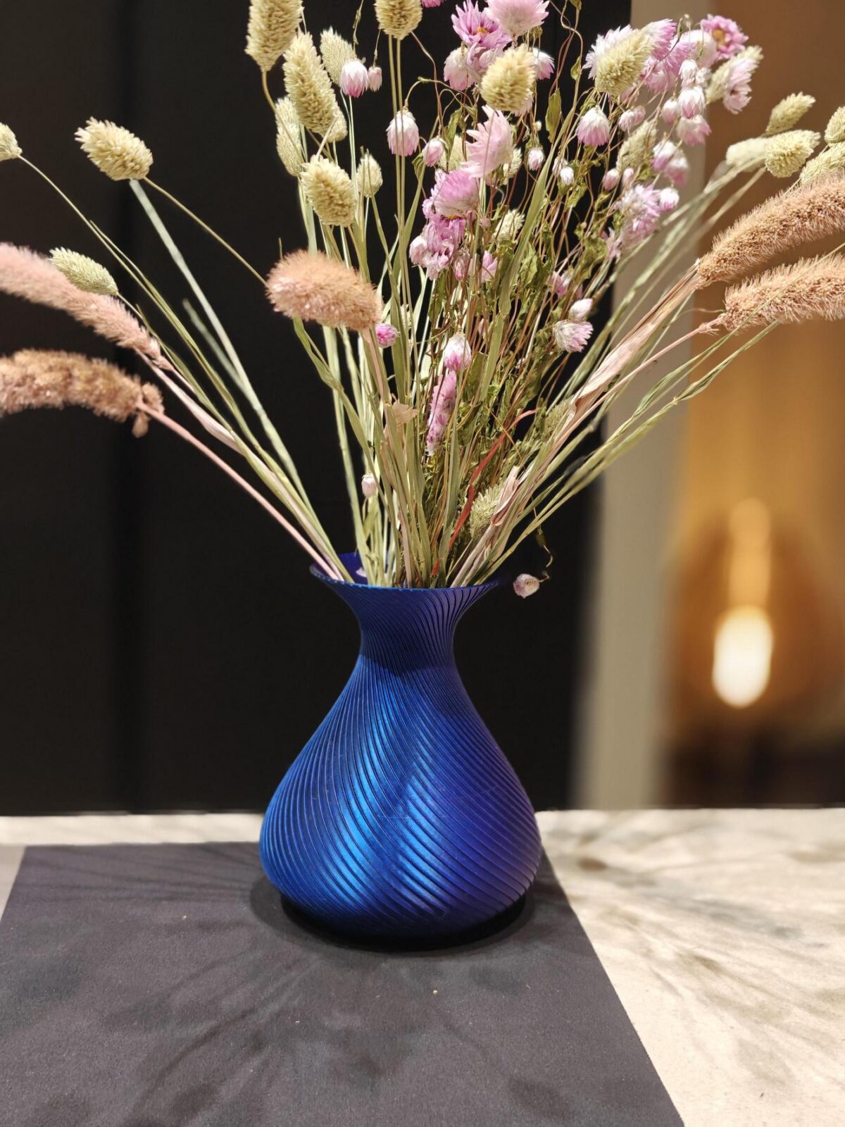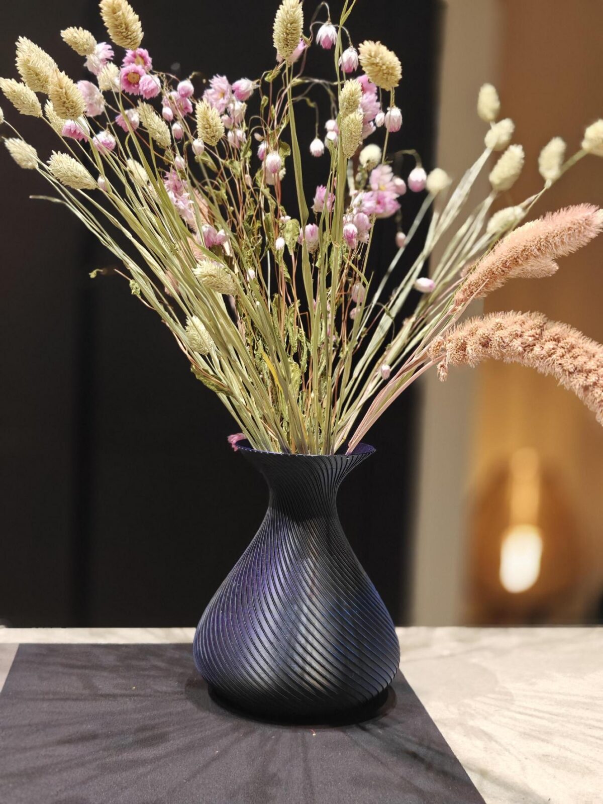 De SilkWave is niet zomaar een vaas, maar een eyecatcher die elk interieur naar een hoger niveau tilt. Perfect voor droogbloemen, pluimen of gewoon als zelfstandig kunstobject.